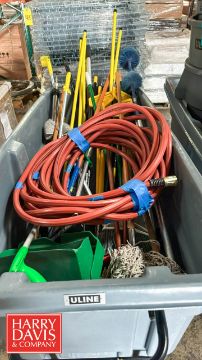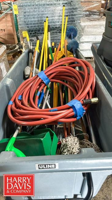 (2) Uline 1,200 LB Capacity Tilt Truck, Model: H-4186GR, S/N: 1902737 with Mop, Mop Handles, Brooms, Dustpans, Hose and Spill Kit Bin