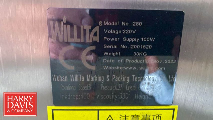 2023 Willita S280 CIJ Inkjet Printer, S/N: 2001529