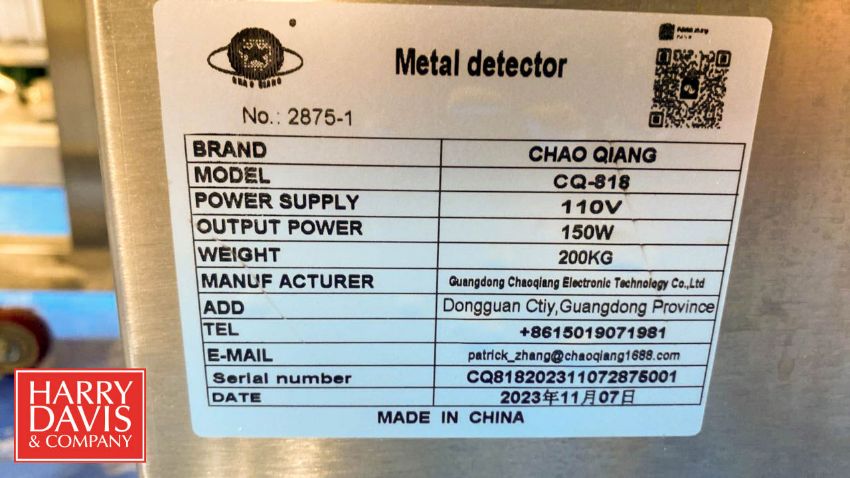 2023 Metal Detector: 59" x 28" x 39", Model: CQ-818, S/N: CQ818202311072875001 with Conveyor and Digital Control