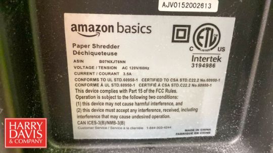 Cross-Cut Paper Shredder, S/N: AJV0152002613