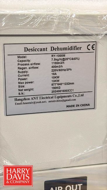 Hangzhou Desiccant Dehumidifier, Model: ANT RY-1000M, S/N: 20240816003001
