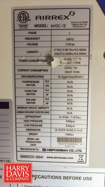 Airrex Portable Air Conditioner & Heater: 16.5" x 24.4" x 40.3", Model: AHSC-12