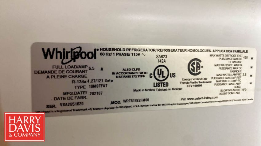 2021 Whirlpool Refrigerator: 65.88" x 29.75" x 33.5", Model: WRT518SZFM00, S/N: VSA2851620