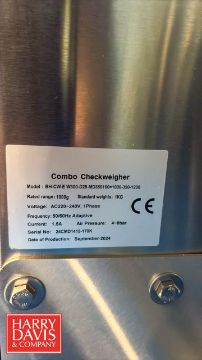 2024 Combo 1 kg Capacity Checkweigher and Metal Detector: 1,200 x 300 mm, with Aperture: 350 x 150 mm, Model: BH-CW-E W300-D28-MD350150-1000-350-1200, S/N: 24CMD1415-170K and (2) Stainless Reject Bins