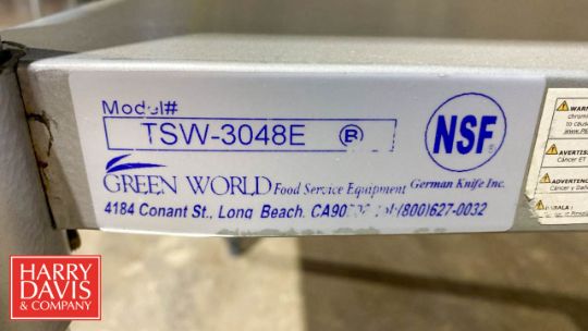 Green World S/S Table: 48" x 30", Model: TSW-3048E with Undershelf