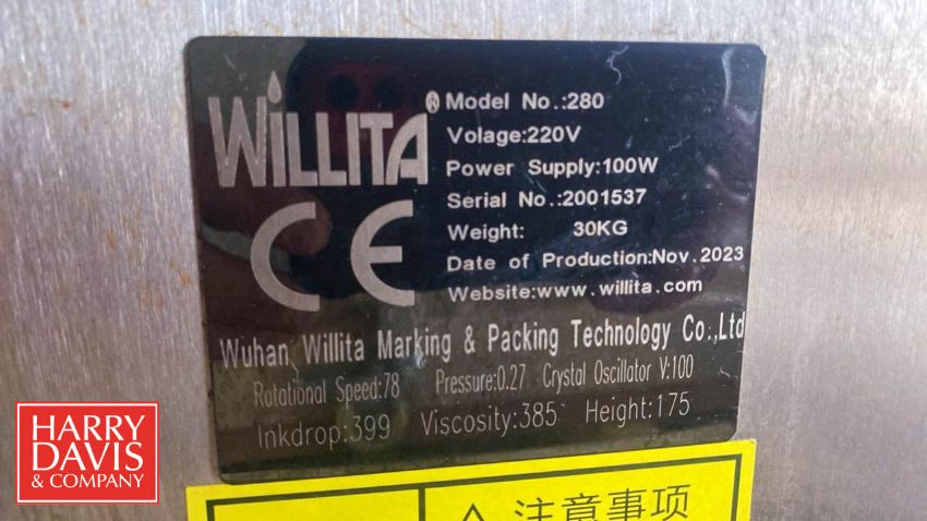 2023 Willita S280 CIJ Continuous Inkjet Printer, S/N: 2001537