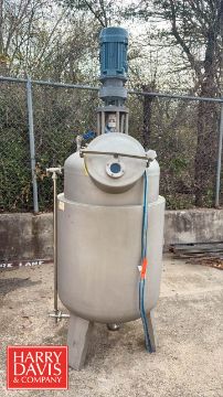 S/S Confectionery and Candy Processing Line, Featuring: Integrated Mixing Tanks, Reactor Vessels, Conveyor or Process Line Modules, Digital PLC/Touchscreen Control Panels and Full Stainless Construction: 24', Reaction Vessel: 6' Height with Gear Drive Agitator and CIP Connections