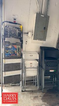 (7) Lifetime Folding Chairs, Gorilla 3-Step Ladders