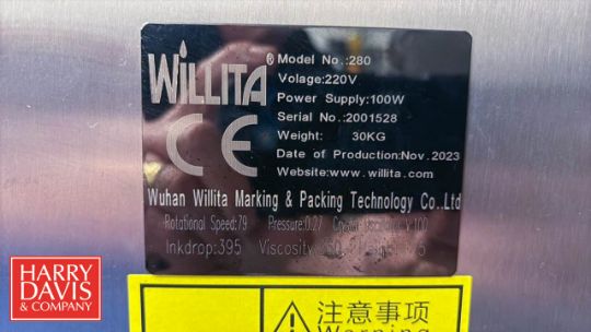 2023 Willita Inkjet Printer, Model: S280 CIJ, S/N: 2001528
