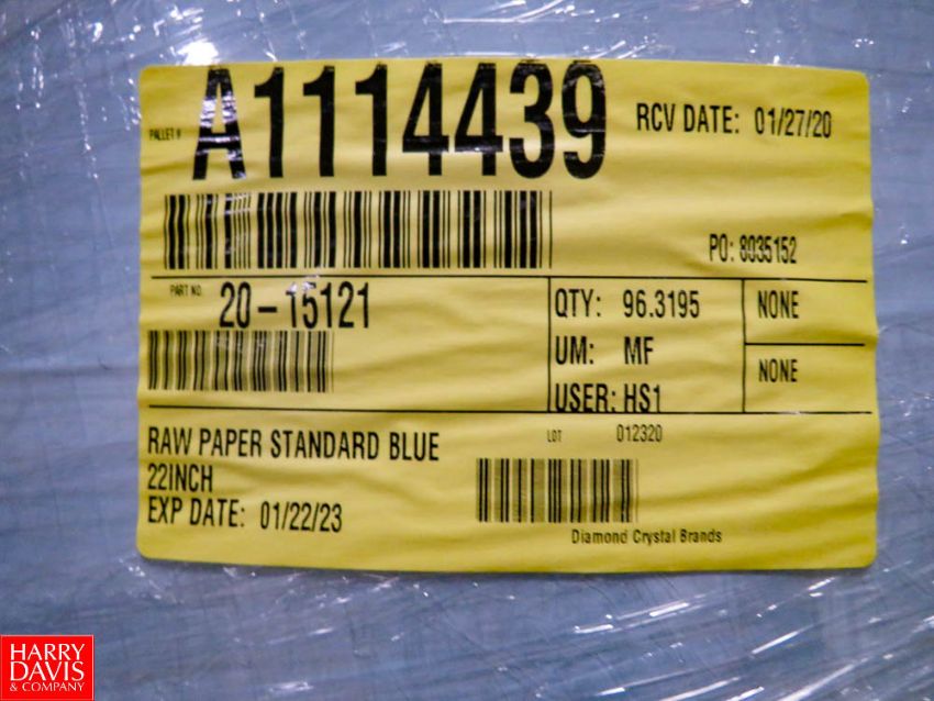 Pallets of Raw Paper Standard Blue, 22" X 52,000 Square Feet Rigging Fee: $600