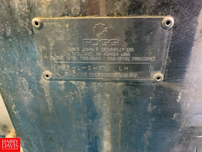 Fogg 44-Valve Filler with 18-Head Capper S/N: 683-1-2-97 LH with Defniox Air Valve, CIP Rings, Ampco Pump, Tank, and Center Section of Conveyor Rigging Fee:$2000
