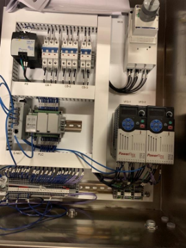 Allen Bradley Controls incl: (2) Allen Bradley Powerflex 525 VFD'S, With Micro 820 PLC, Touch Screen, and S/S Enclosure Rigging Fee: $250