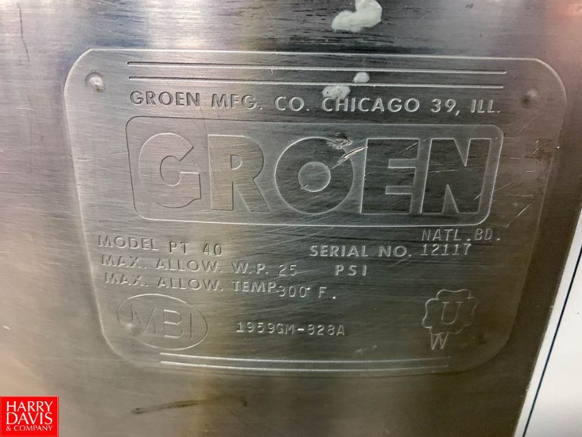 Groen Jacketed S/S Kettle Model PT40, S/N 12117, With Neptune Mixer Rigging Fee: $100
