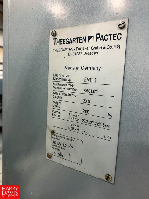 Theegarten Pactec High Speed Wrapper Model: EMC 1, S/N: EMC1.011, With Conveyor, Allen Bradley Logix 5560M03SE PLC Controls, Ultra 3000 Servo Drives, And Powerflex Variable Frequency Drives Rigging Fee: $450