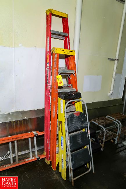 Ladders (1) Werner 28' Extension Ladders, (1) Louisville 8' Ladder, (1) Werner 6' Ladder, (1) Werner 4' Ladder, (1) Step Ladder, & (3) 2-Step Stools. Rigging Fee: $ 25.00