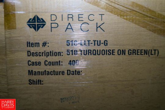 (92) Direct Pack 510 Turquoise on Green (LT) Lids Model: 510-LLT-TU-G, 400 Units per Case. Rigging Fee: $ 20.00