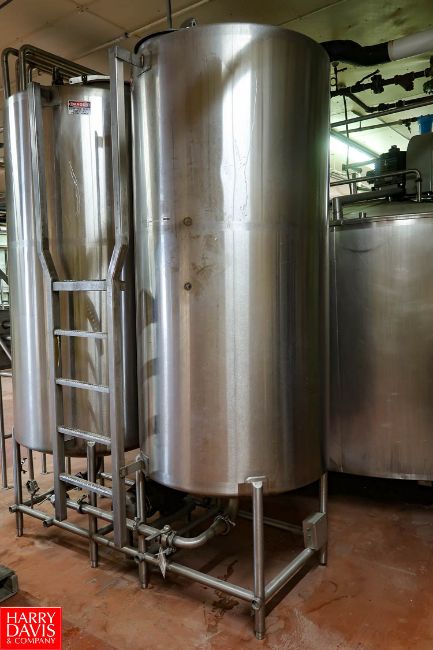 2-Tank CIP Skid with (2) 450 Gallon S/S Tanks & (1) Tri-Clover 1-1/2" x 2" S/S Clamp Type Centrifugal Pump Rigging Fee: $1000