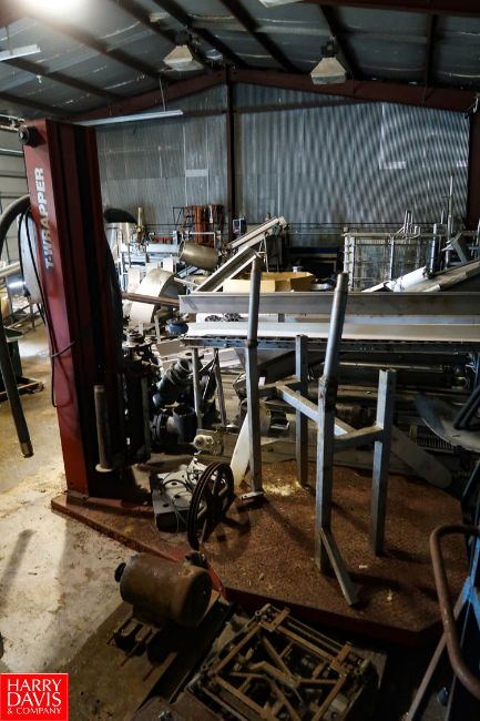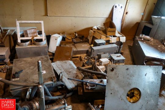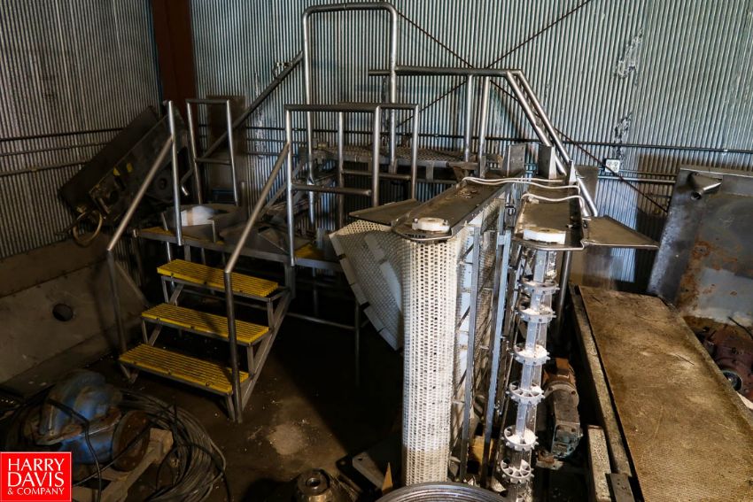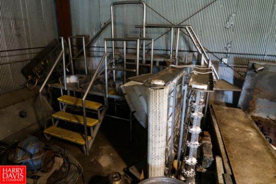 Remaining Contents of Farm Storage Shed to Include S/S Tanks, Hi-Jacker Portable Stair Case, S/S Heat Exchanger Frames, Poly Link-Belt Conveyors with S/S Frames, S/S Piping, Heat Shrink Tunnel Conveyors, Fine saver Parts Machine, S/S Platforms, Pumps, Motors, Vacuum Pump Components, Conveyor Frames, Battery Charger, Spare Parts, Control Boxes, Etc. (Excludes Separately Lotted Items) Rigging Fee: $Call for Rigging