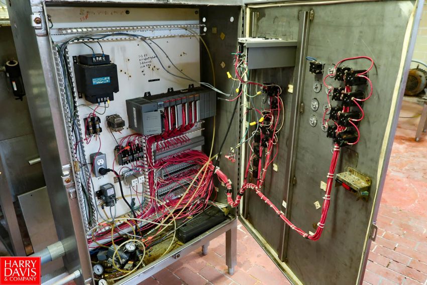 Supreme S/S Fabricating Inc. CMC Cheese Molder Press 96-Station Dual Lane Carousel, (2) Mold Presses, Equipped with 12 LB. Provolone Round Molds, (2) Stainless Steel Control Cabinets, Allen-Bradley PanelView 1,000 PLC Control Rigging Fee: $3000