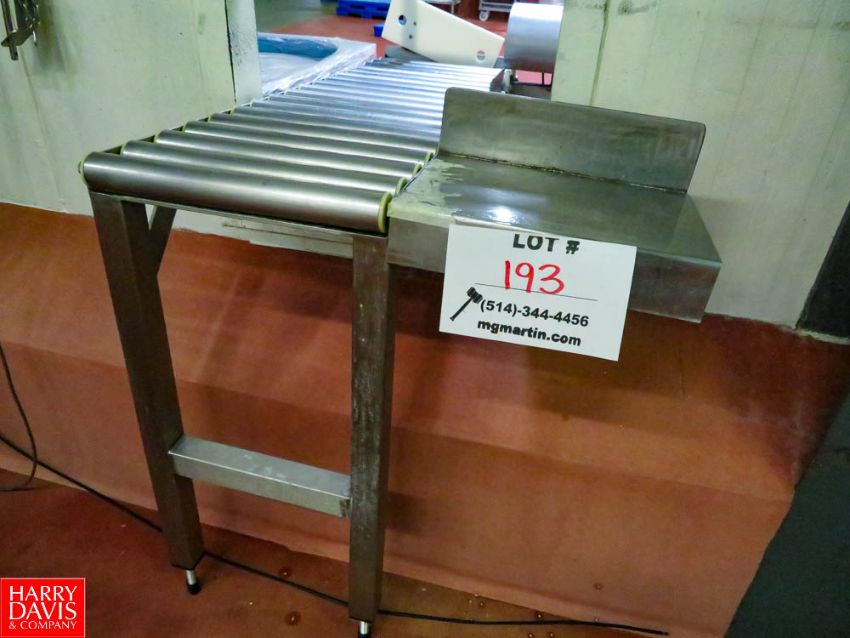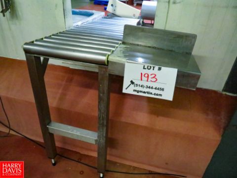 S/S Roller Conveyor With Air Pusher, 110 Volt Controls, 54"L x 17"w x 35"h Rigging Fee: $70