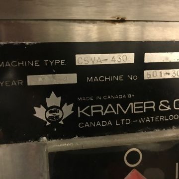 Kramer And Grebe 3 Wide Vacuum Tray Sealer Model: CSVA-430. Rigging Fee: $1750