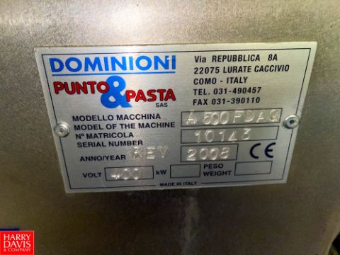 2008 Dominioni Punto; Pasta Sheeter Mixer, Model: A500FDAG, S/N: 10143. Rigging Fee: $750