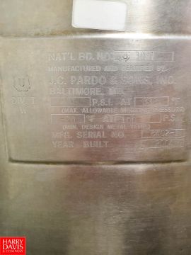 150 Gallon S/S Kettle, S/N: 8402-1, With Scrape Surface Agitator, 100 Psi. MAWP At 338 Degrees F.. Rigging Fee: $750*** Subject to Confirmation***