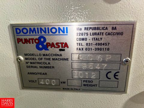 2012 Dominioni Pinto; Pasta S/S Dryer Model: EC69, S/N: 9547, With 38" Wide Belt, Allen Bradley Power Flex 4M Variable Frequency Drive's, 64.5" Wide X 210" Long X 100" High. Rigging Fee: $1250