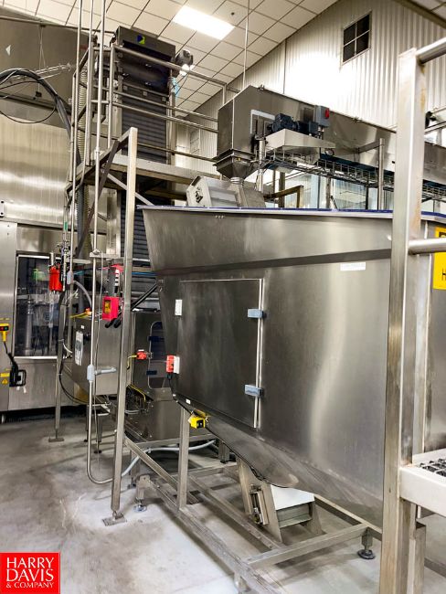 Gebo Cermex Cap Feeding System Model 2024V15, S/N K26544K1 with S/S Hopper, Platform Elevators and Sided Dump Hopper Rigging Fee: $ 3000