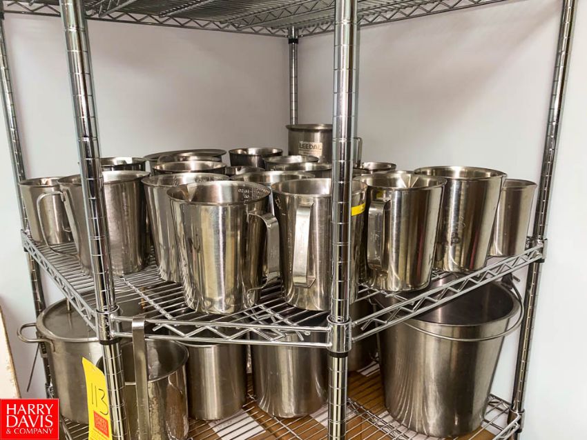 S/S Measuring Cups, Buckets, Pots, Containers and Wire Rack - Rigging Fee: $35
