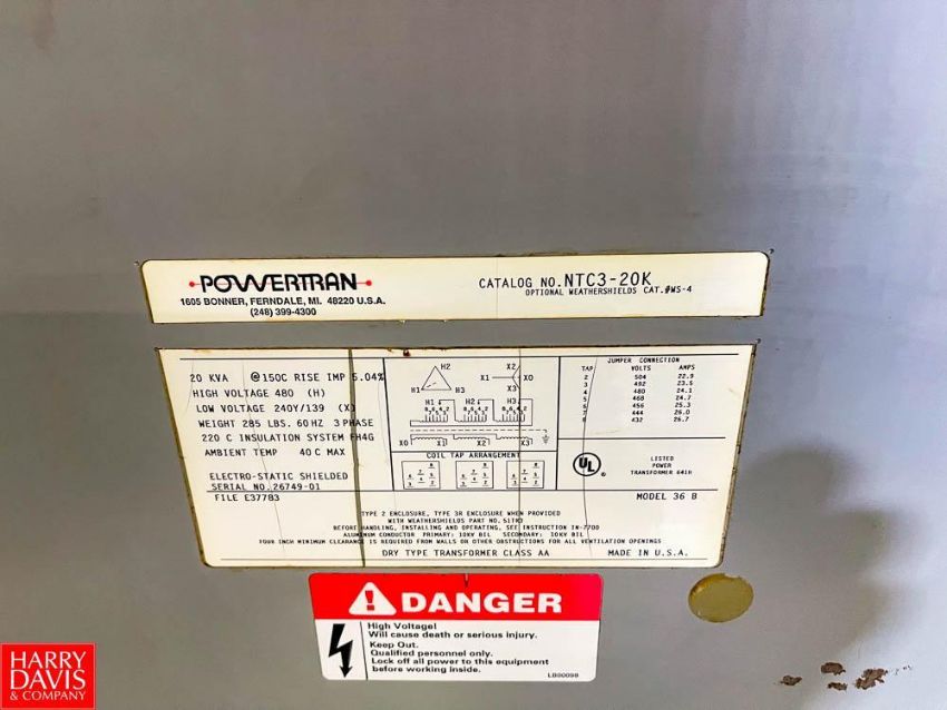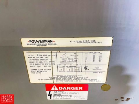 Power Tran 20 kVA, 480 Volt Transformer, Catalog Number: NTC3-20K