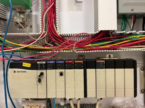 Allen-Bradley Logix 5555 with EtherNet/IP, ControlNet, (3) I/O Cards, (8) Allen-Bradley PowerFlex 700 Variable-Frequency Drives, Allen-Bradley PanelView 1000, Sola Power Supply, Circuit Panel and S/S Enclosure - Rigging Fee: $450