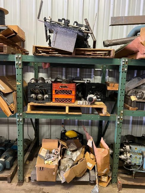 Assorted S/S Air Valves and Air Valve Parts, Wall-Mounted Enclosure, S/S Pump Heads, Pump Body, Pump Parts and Conveyor Parts - Rigging Fees: $125
