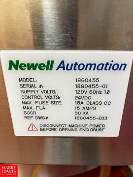 Newell Automation Control Panel, Model: 18G0455, S/N: 18G0455-01, with Allen Bradley Compact Logix 5380 Controls and PanelView Plus 7 Display. Mounted on Lot 32 which is on S/S Skid by MG Newell. Main controls are Lot 39 - Rigging Fee $300