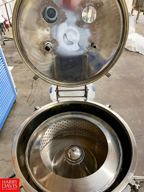 2020 Guangzhou 50lb S/S Hemp Centrifuge mounted on S/S Base with Siemens & Honeywell Controls and Spare Filter Bags, Model: PPTD-50 220V 60HZ Single Phase D:A: 600mm Capacity 40L Limit Capacity 60kg. Speed 1500RPM. G Force 755g. Siemens HMI ABB/Honeywell Transformer