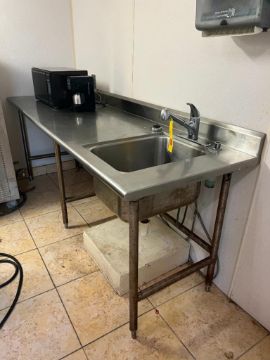 S/S Table with Round Edges, Backsplash and Sink - Rigging Fee: $125
