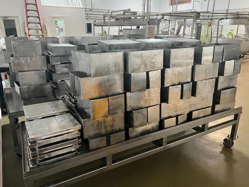 40 LB S/S Cheese Forms with Cover, Liner and Pins, Dimensions= 14" x 11" x 7" (Compressed) - Rigging Fee: $125