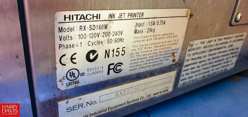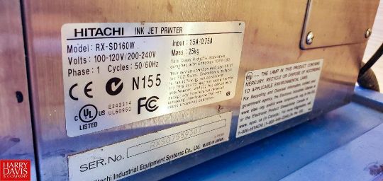 (2) Hitachi Ink Jet Printer with Tables , Model: RX-SD160W, S/N: RXS07601307 and RXSO7559307 (Location: Miami, FL) - Rigging Fee: $100