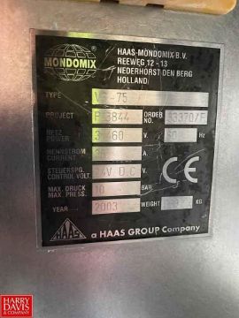 Haas Mondomix S/S Aerator with Allen-Bradley Panel View Plus Touch Screen HMI, Model: VG-75, SN: P13844 (Location: Green Bay, WI) - Rigging Fee: $1,500 (Loading Restricted to Jan 24-26, by appointment ONLY, Flat Beds Only)