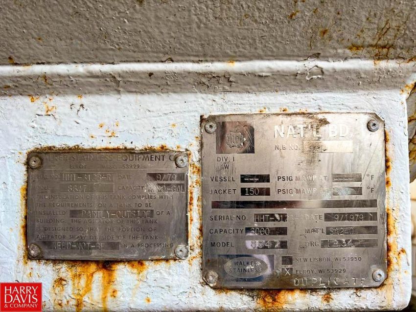 Walker 6,000 Gallon Jacketed S/S Horizontal Tank, Model: 8847, S/N: HHT-3123-R with Dual Vertical Agitation, Level Sensor and Gauge (Location: Neosho, MO) - Rigging: $2,800