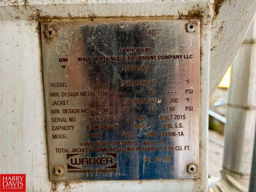 2015 Walker 6,000 Gallon Jacketed 316 S/S Horizontal Tank, Model: HHT S/N: WEP-133407 with Dual Vertical Agitation, Level Sensor and Gauge (Location: Neosho, MO) - Rigging: $2800