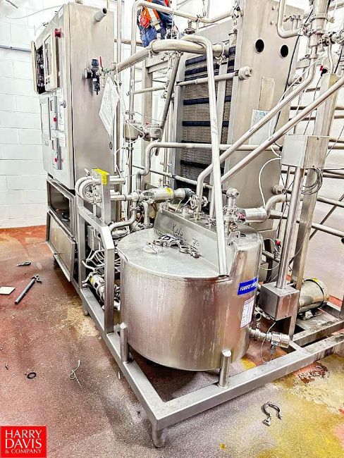 Ross 13,000 LB Per/HR Pasteurizer, Mounted on Skid with Alfa Laval Plate Heat Exchanger, Model: C4P8RM, S/N: 30104-94941, Fristam Pumps, Balance Tanks, Holding Tube, Hot Water Jet, Flow Meter and Controls (Location: Plover, WI) - Rigging Fee: $3,000