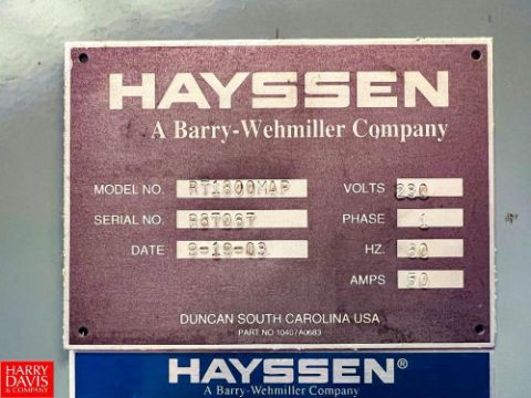 Hayssen Flow Wrapper, Model: RT1800MAP, S/N: R87067 with Touch Screen HMI (Location: Louisville, OH) - Rigging Fee: $250