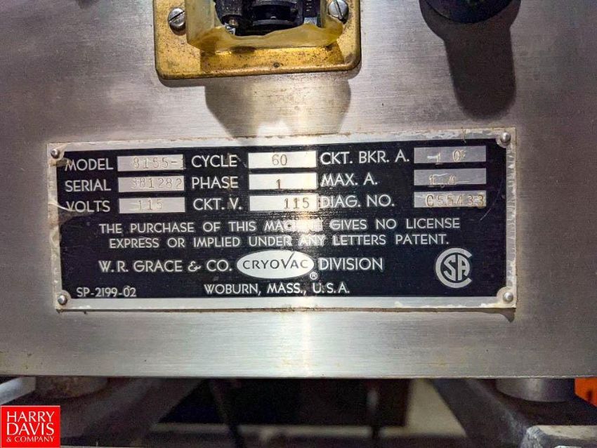 Cryovac Taped Bag Loader, Model: 8155, S/N: 381282 with S/S Framed Belt Conveyor, Dimensions = 58" x 18" (Location: Alliance, OH) - Rigging Fee: $500