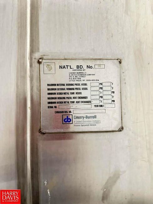 Waukesha Cherry-Burrell 6,000 Gallon Jacketed S/S Tank, S/N: E-092-92 with Vertical Agitation, S/S Air Valve and Gauge (Formerly Lot 13) (Subject to Confirmation) - Rigging Fee: $7,500