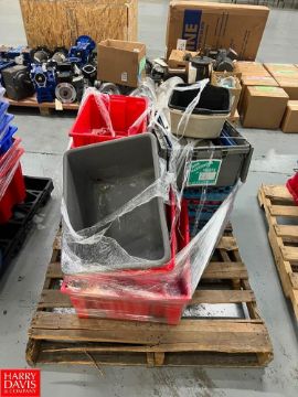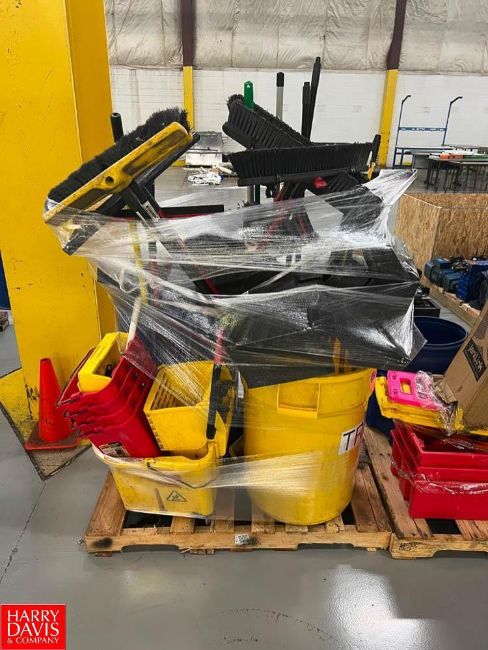Assorted Trash Cans, Mops and Buckets, Brooms, Dust Pans, 5 Gallon Buckets, Recycling and Storage Bins - Rigging Fee: $300