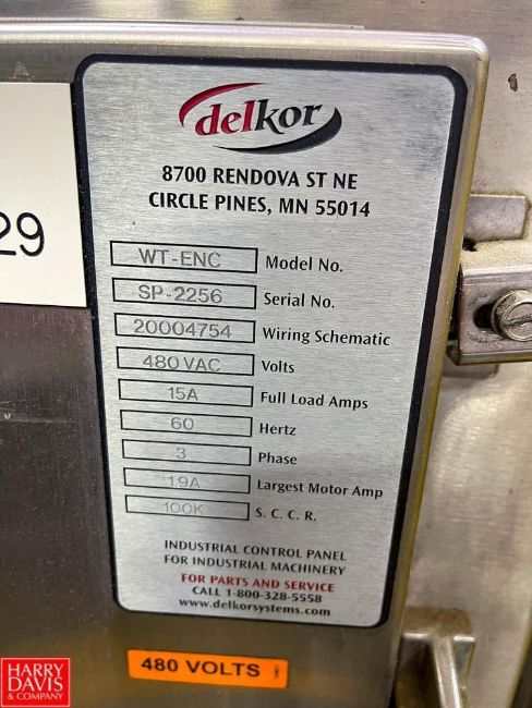 BULK BID (Lots 0A-0N): Fogg 36-Valve Filler, S/N: 555-60-1-04-R14 with 10-Head Capper, Cap Feed System, (2) S/S Mixproof Air Valves and S/S Control Panel, Fristam Centrifugal Pump with Baldor S/S Clad Motor, Wilden S/S Double Diaphragm Pump with Wilden Discharge Manifold, Tensor ID Vision Inspection System, S/S Frame Bottle Conveyor, S/S Frame Accumulation Table, S/S Frame Accumulation Table, Axon Styrotech Shrink Sleever, S/S Heat Tunnel, Mettler Toledo Safeline X-Ray, Adco Horizontal End Load Cartoner with ADCO Laning Conveyor and Nordson ProBlue 4 Glue Machine, Delkor Spot-Pak Tray Shrink Wrapper, Delkor Bundler and Shrink Tunnel with 2-Door S/S Control Cabinet and S/S Frame Case Exit Conveyor with 90° Turn and CTM Integration Pressure Sensitive Labeler (Subject to Piecemeal Bidding) - Rigging Fee: $10,000