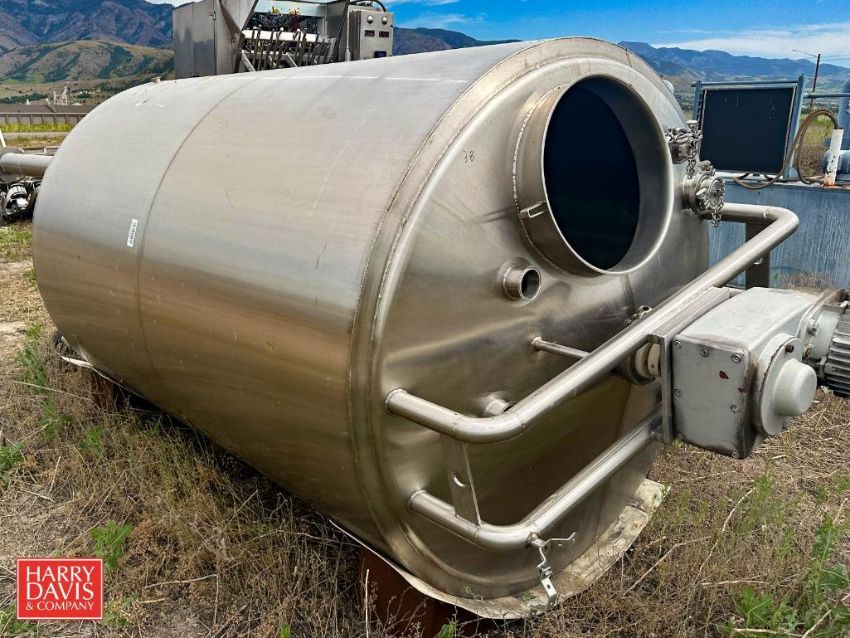 GV Northwest 1,800 Gallon S/S Pasteurization Tank, S/N: 18430 with Sweep Agitation, 115 PSI Max - Rigging Fee: $350
