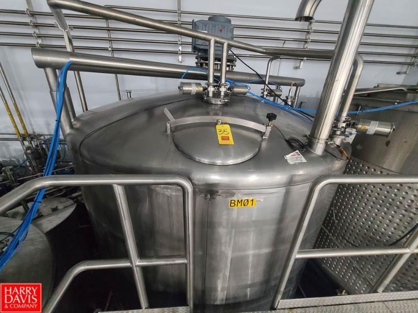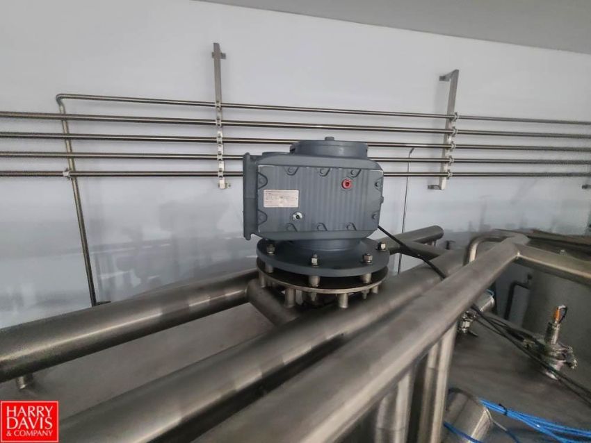 4,000 Gallon (15,141 Liter) Cone-Bottom Jacketed S/S Mixing Tank with Side Sweep Agitator, CIP Spray Ball, Load Cells and Associated Valves - Rigging Fee: $2,000