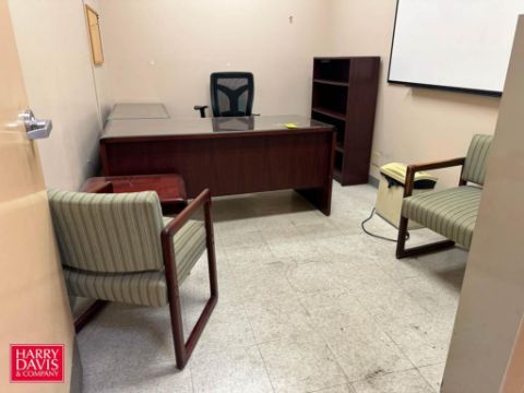 L-Shaped Desk, Lateral File Cabinet, Chairs, Bookcase and Fellowes Shredder - Rigging Fee: $300